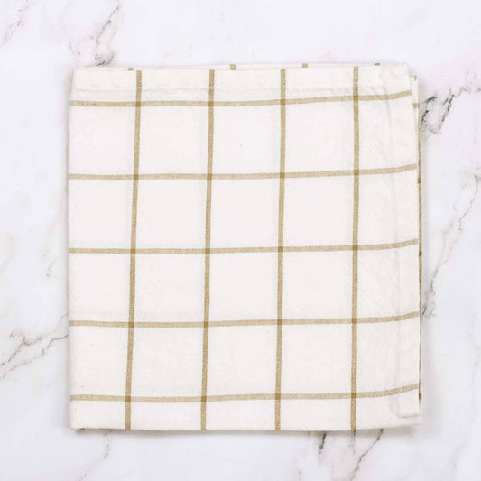 Margaux Gold-Button Stripe Dress – Taupe/White