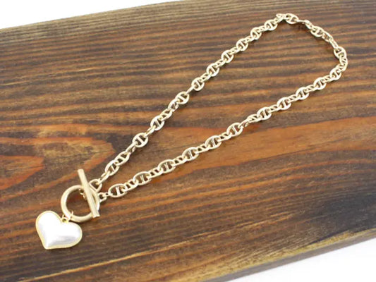 Mother-of-Pearl Pavé Heart Toggle Necklace — Gold