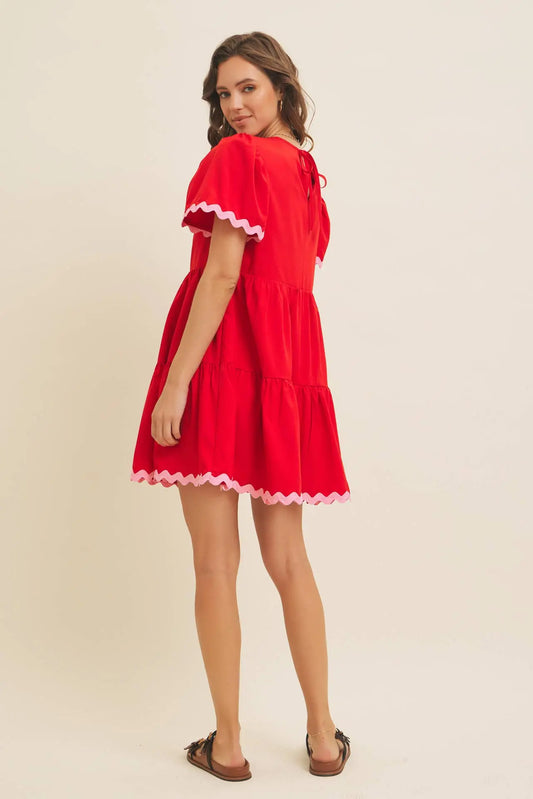 Savannah Tiered Mini Dress with Contrast Ric Rac
