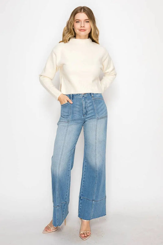 Madelyn Jeans – Patch Pocket Wide Leg (Moonstone)