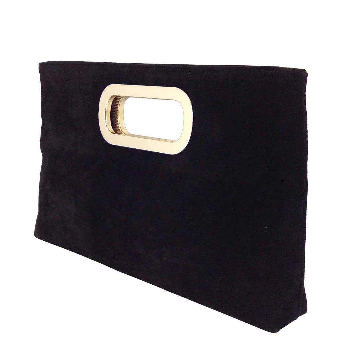 Polished and refined, the Celeste Top Handle Faux Suede Clutch offers a structured silhouette with an elevated modern touch. The cutout top handle creates a sculptural moment, while the faux suede body maintains a soft, elegant feel. Perfect for dinners, events, or anytime you want a minimal yet striking accessory.