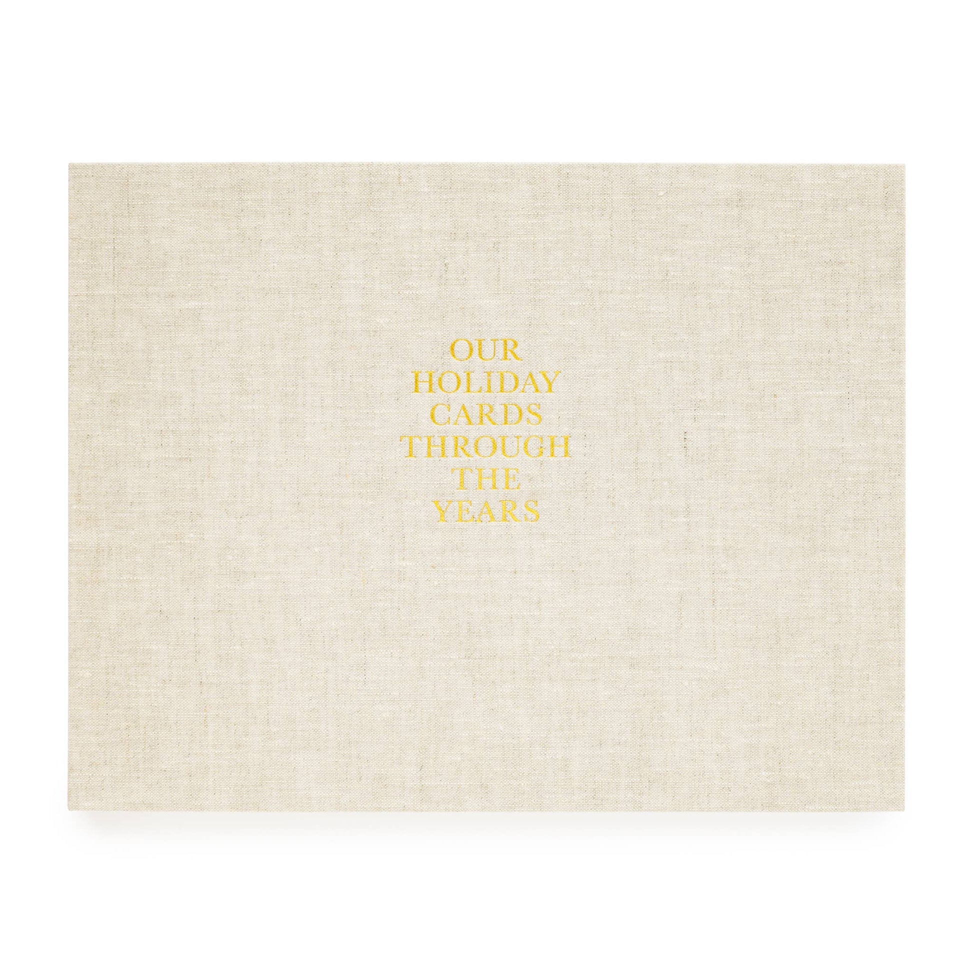 The Holiday Card Book in Flax is a beautifully bound album designed to store and preserve every special Christmas card your family receives each year. With gold foil lettering and a neutral linen-inspired cover, it’s elegant enough to display on a coffee table and meaningful enough to pass down through generations.
