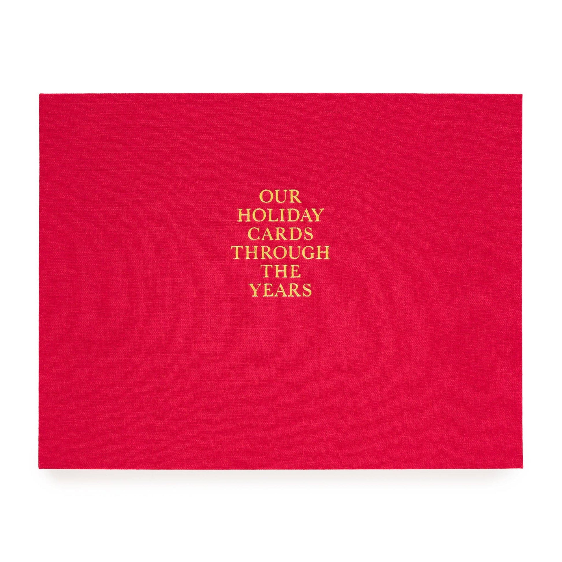This elegant holiday card book creates a treasured keepsake book that preserves your family's cherished Christmas memories in sophisticated fabric with luxurious gold detailing. * Holiday Red Fabric Bound Cover * Concealed Spiral * 20 Blank Pages * 10.375 x 13.375 Inch Cover * 10 x 12 Inch Pages * 50 Adhesive Tape Strips * ORG47