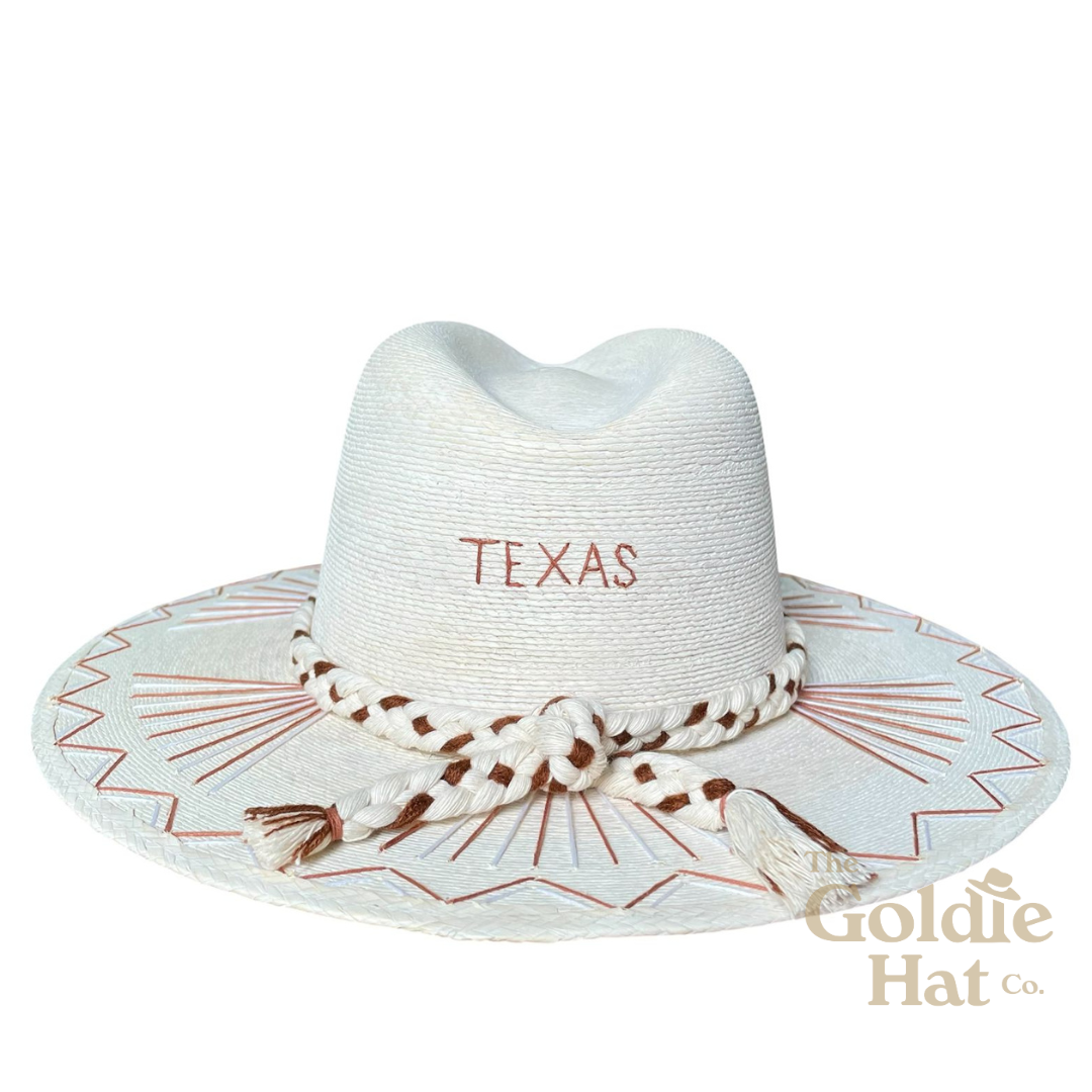 Show your state pride—in style. Our Texas Game Day Inspired Hat blends a crisp, fashion-forward crown with “TEXAS” front embroidery and a patterned brim detail that looks chic well beyond the stadium.